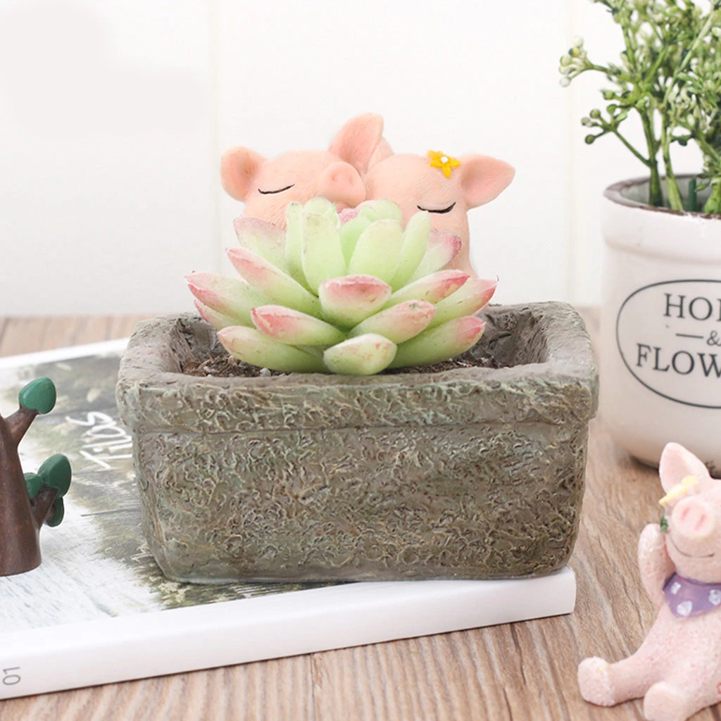 An adorably Cute Pig couple having a romantic time Resin Succulent Pot is a perfect pot for your succulents! Made out of resin, this pot is an ideal piece for your home as it is perfect for indoor or outdoor use! Durable and Anti Corrosion, this pot makes for a visual delight! Perfect for gifting too!