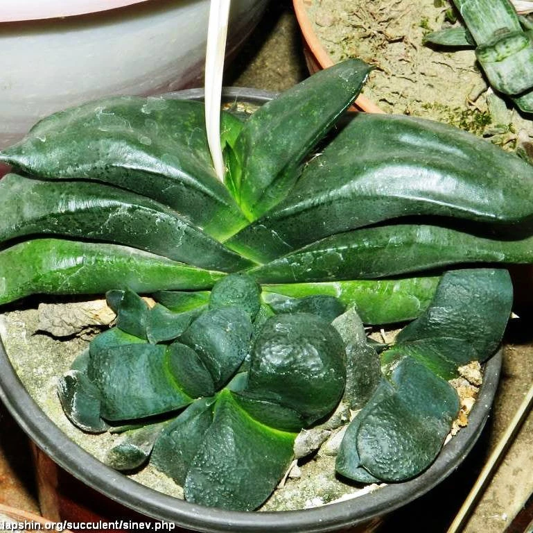 Gasteria Armstrongii is one of the slow growing and rarer Gasterias with dark green leaves. It contains some of the most handsome individual clones of any species. Small rosettes, of two to four thick-skinned fat leaves, eventually to 4 . Old specimens cluster naturally with new plants around the original. It is very slow growing.