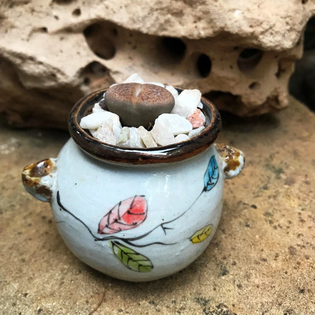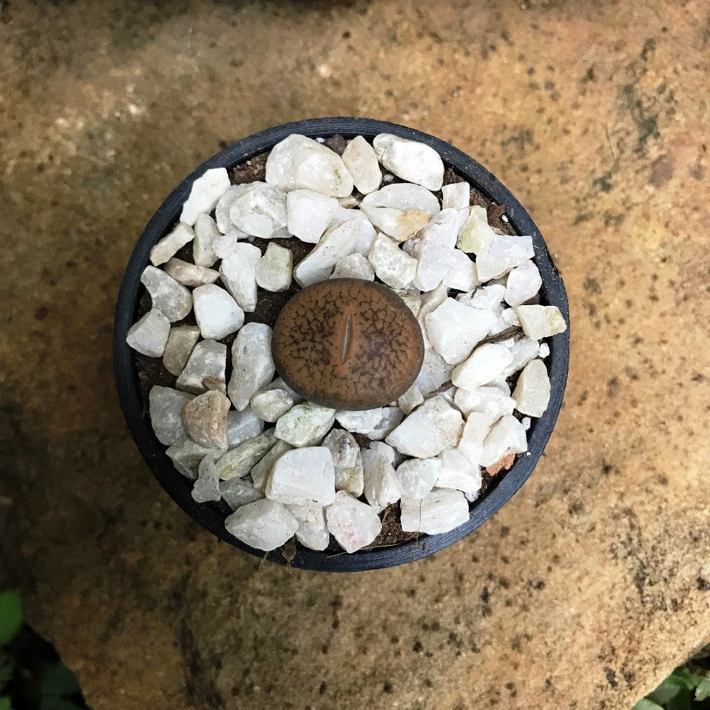 When the plants are a year old, water them once every two weeks in summer and once every 2 months (if necessary) in winter. When the new leaves are pushing though the old leaves, watering should be stopped altogether otherwise leaf pairs start stacking on top of each other. Since the stone plant has such a long tap root,the pot should be at least 3.5-4 deep. Proper drainage is a must so make sure the pot has a hole in the bottom.