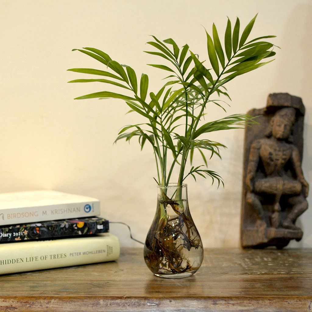 An urban green solution if there ever was one, a water terrarium is a simple and confined little ecosystem that is very pretty to look at and brings some natural grace to your home decor! Keep it simple with our beautiful parlour palm terrarium which showcases the beauty of the roots as well. Our water terrariums are carefully curated and are extremely low maintenance. Green up your home with these little beauties by placing them in your favourite corners!
